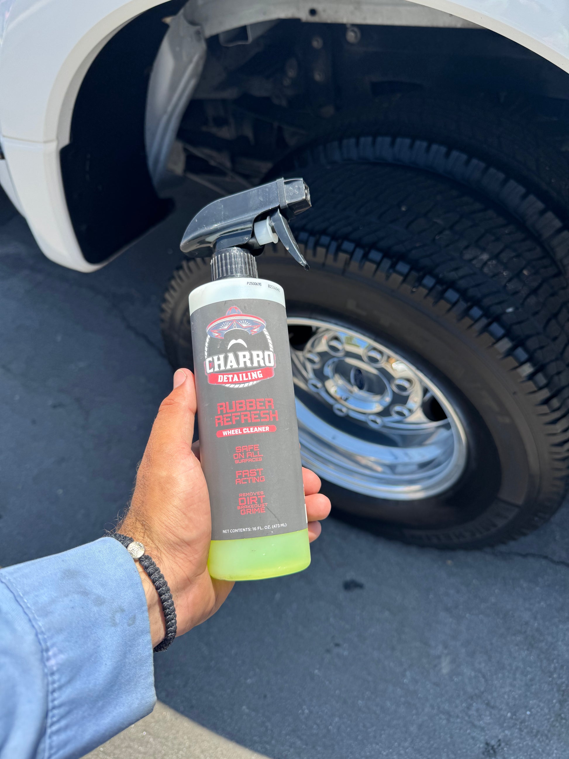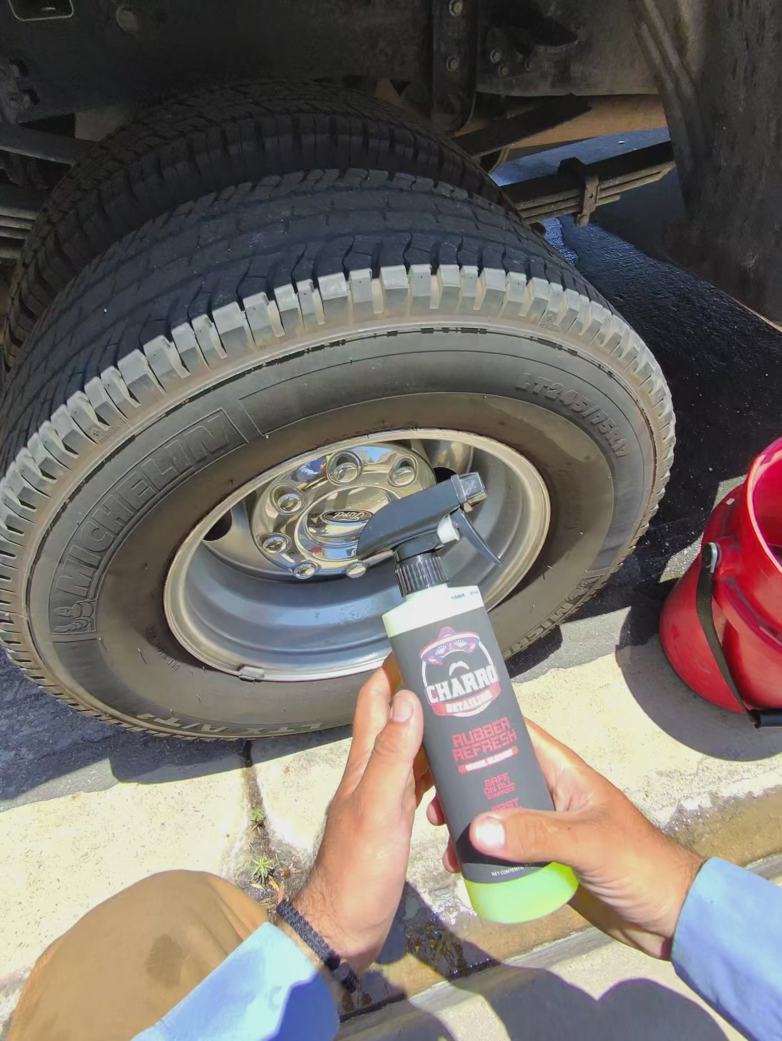 Rubber refresh is just like its name , refreshes the rubber. Detailing SXS , I’ve notice trailer , trucks & SXS the tires faces have been getting a brown tint. Rubber refresh helps to fight that brown face. Ready to apply! , apply , scrub & wash off & apply your fav tire shine & wheels will look like new.